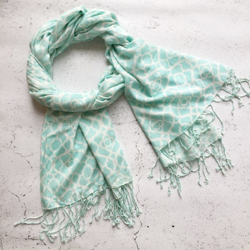 This stunning scarf features an on-trend Mosaic design. It has a luxurious drape, is lightweight, and resists creasing, making it perfect for dressing up any outfit.