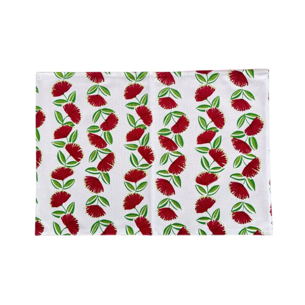 Make your table look festive with a set of 4 Pohutukawa flower design placemats. Made of 100% cotton with table runners and tablecloths available to match.